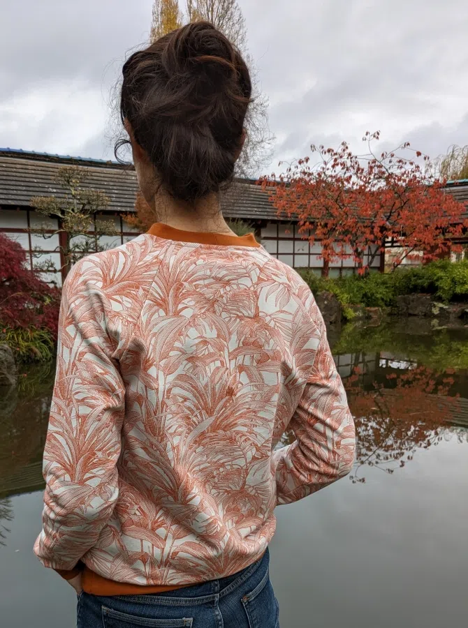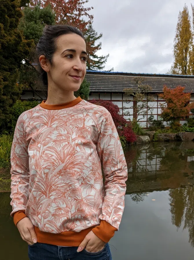 Sweatshirt raglan avec col rond, tissus à motifs imprimés au choix.