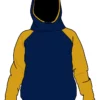 Intérieur de la capuche doublé en jersey bleu marine 95% coton bio 5% élasthanne.